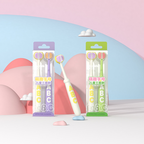 الأكثر مبيعًا فرشاة أسنان ثلاثية الجوانب مانعة للانزلاق على شكل كرتون فرشاة أسنان ناعمة فرشاة أسنان للتنظيف العميق للأطفال