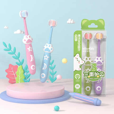 Brosse à dents à 3 faces Brosse à dents d'entraînement pour enfants avec trois poils 4-12 ans Brosse à dents en forme de dessin animé