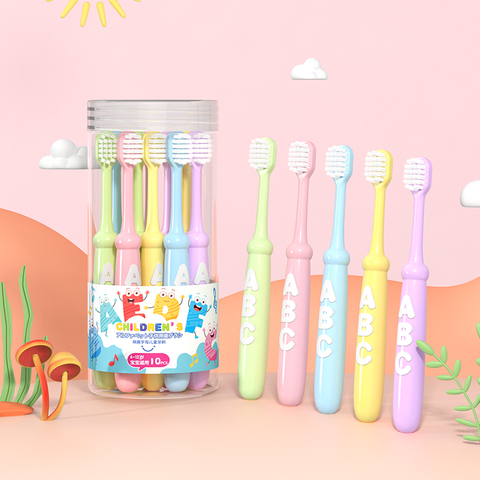 Brosse à dents à poils souples Oem 0.15mm pour bébé, brosse à dents à usage domestique pour l'entretien des gencives en baril, 10 pièces